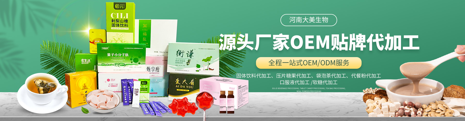 河南大美生物科技股份有限公司是從事顆粒劑、(固體飲料類),壓片糖果代加工等研發(fā)和銷售為一體的生產(chǎn)企業(yè)。公司依托自身的高科技研發(fā)隊(duì)伍和營(yíng)銷團(tuán)隊(duì),為國(guó)內(nèi)外客戶提供營(yíng)養(yǎng)食品各劑型和規(guī)格的研制、生產(chǎn)、配方設(shè)計(jì)、批文申報(bào)等服務(wù),并為客戶提供多種形式的流通渠道及產(chǎn)品銷售服務(wù)工作。 您的要求就是我們的使命!我們的宗旨是與客戶“合作共贏,攜手向前”,共同創(chuàng)造事業(yè)新的輝煌!